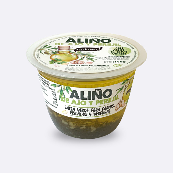 Aliño de ajo y perejil elaborado al estilo casero. Preparado y listo para su consumo, tan solo con abrir es posible disfrutar de todo el sabor del aderezo más utilizado en la cocina mediterránea. Perfecto para carnes, pescados, mariscos, verduras y pastas.