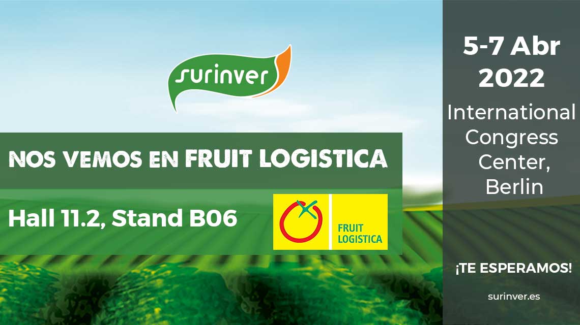 Ya queda muy poco para vernos en la nueva edición de Fruit Logistica 2022 en Berlín, el gran punto de encuentro a nivel mundial para los productores de frutas y verduras. Nuestro equipo comercial de Surinver os espera en el Pabellón 11.2 – Stand B06 para mostraros todo nuestro surtido de producto.